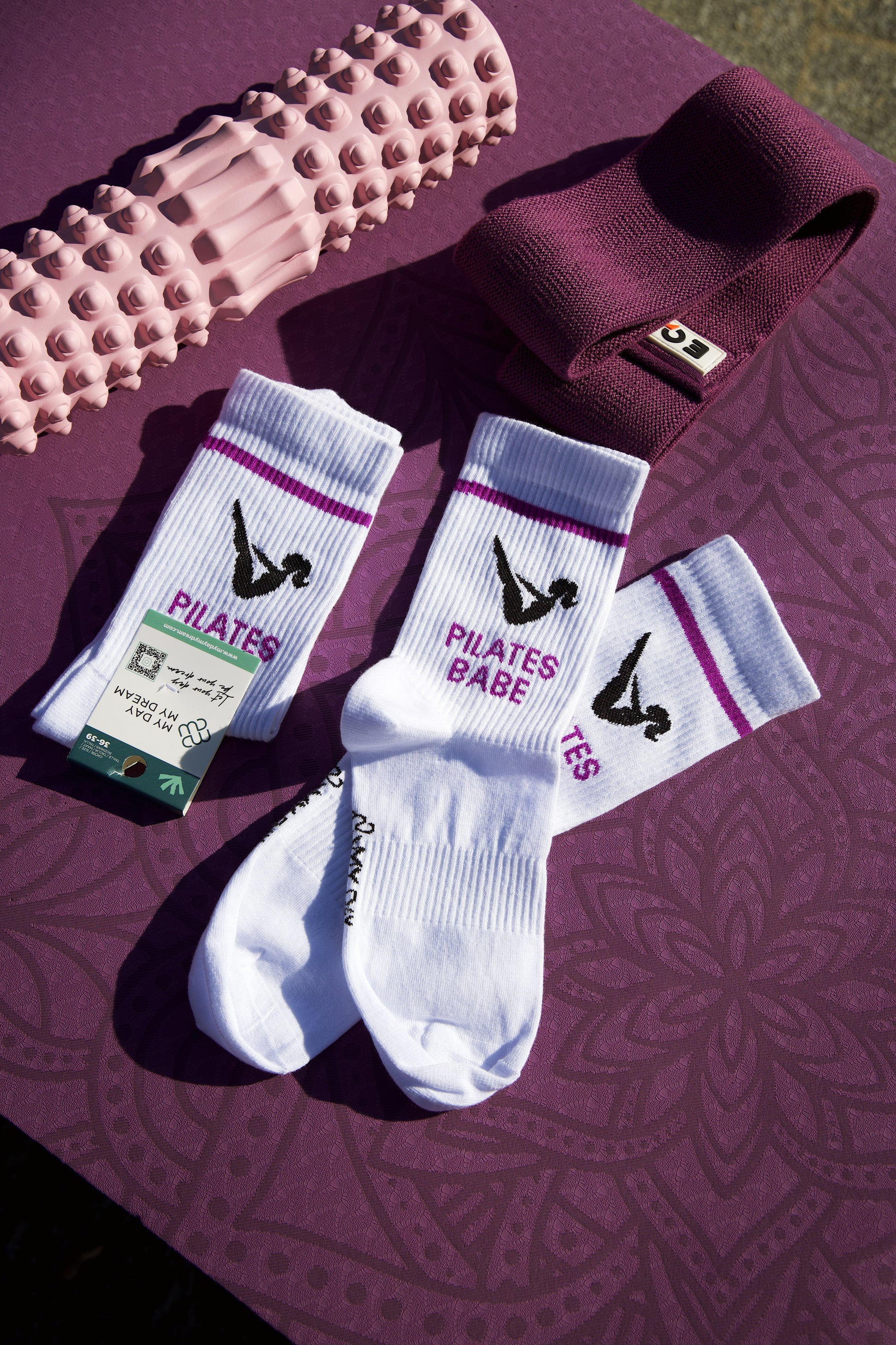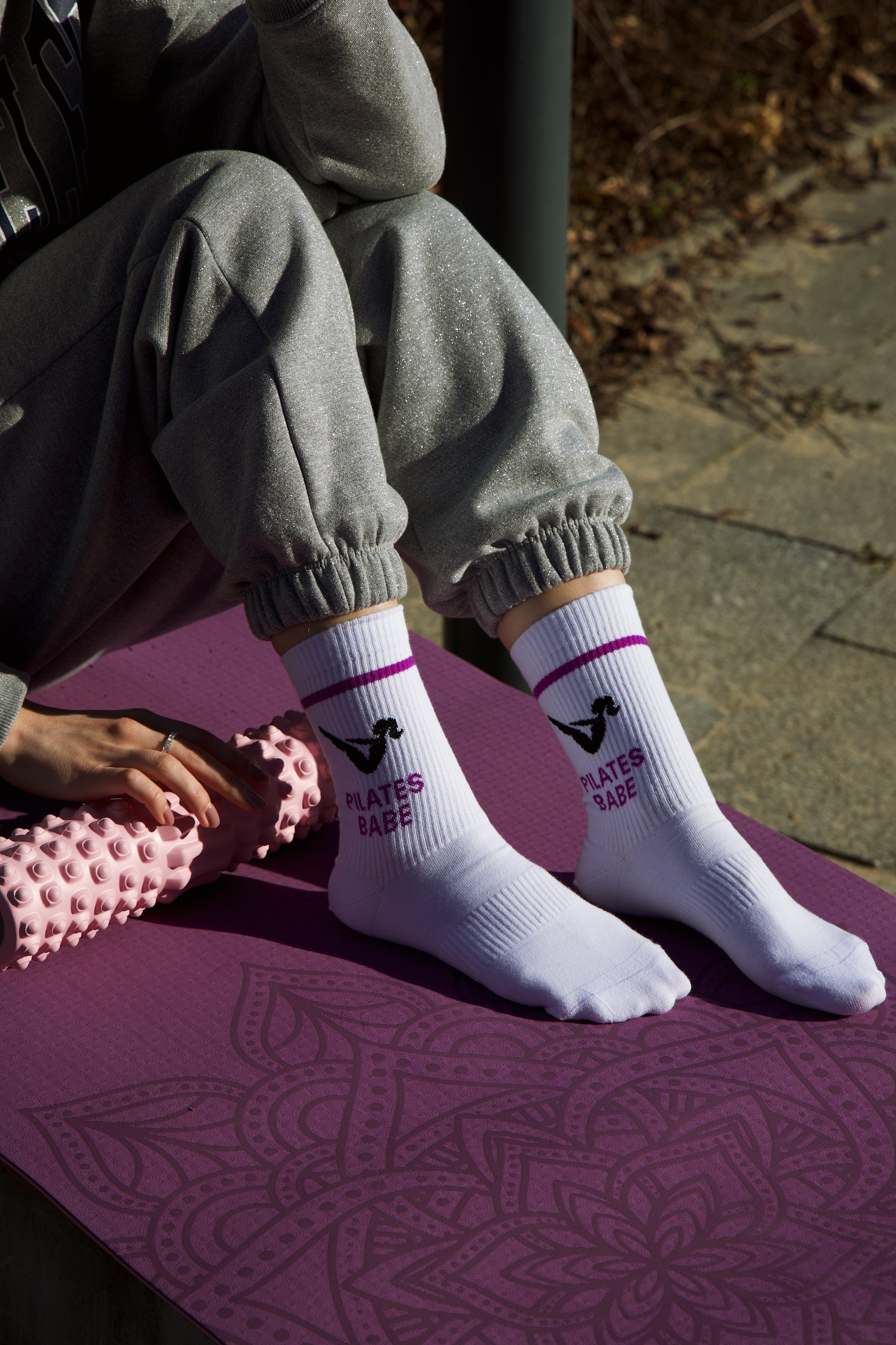 Designed für alle Pilates-Lover:innen, die Komfort und Ästhetik verbinden wollen. Das minimalistische Babe-Design trifft auf eine verstärkte Sportsohle, die perfekten Halt und angenehmen Support bei jeder Bewegung bietet.