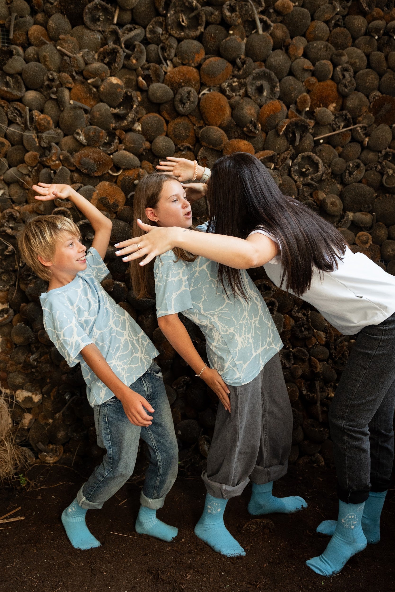 Socken-Kollektion mit drei leuchtenden Designs: der fröhliche Geist „Boo“, ein gruseliger Kürbis und schaurige Spinnen. Diese Socken sind nicht nur für Halloween, sondern auch für den Alltag ein echter Hingucker! Der Glow-in-the-Dark-Effekt macht sie besonders spannend – Kinder lieben es, ihre Socken mit einer Taschenlampe aufzuladen und den magischen Glanz zu sehen.