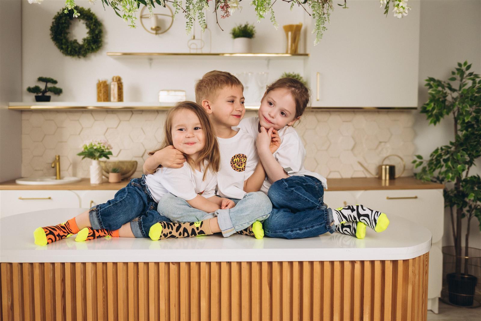 Check mal unsere coolen T-Shirts mit Animalprints-Smileys! Und das Beste: Du kannst sie mit passenden Socken kombinieren und einen lässigen Familien-Look kreieren – voll im Trend! In allen Größen verfügbar… von gross bis klein…. Jetzt deinen Style finden und gemeinsam strahlen!