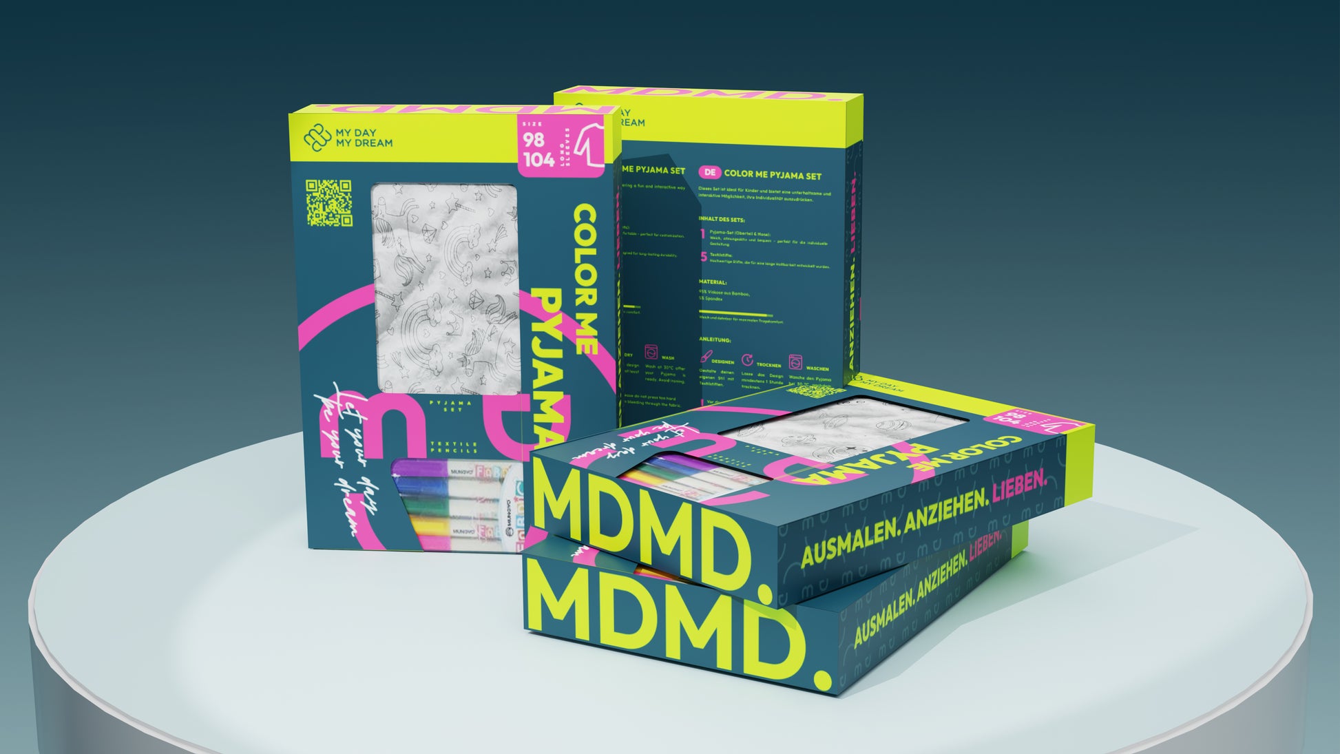 Dieses außergewöhnliche Pyjama-Set kombiniert Komfort, Kreativität und jede Menge Spaß. Kinder können ihr eigenes Sleepwear-Meisterwerk gestalten – dank hochwertiger Textilmarker, deren Farben auch nach dem Waschen strahlend bleiben.