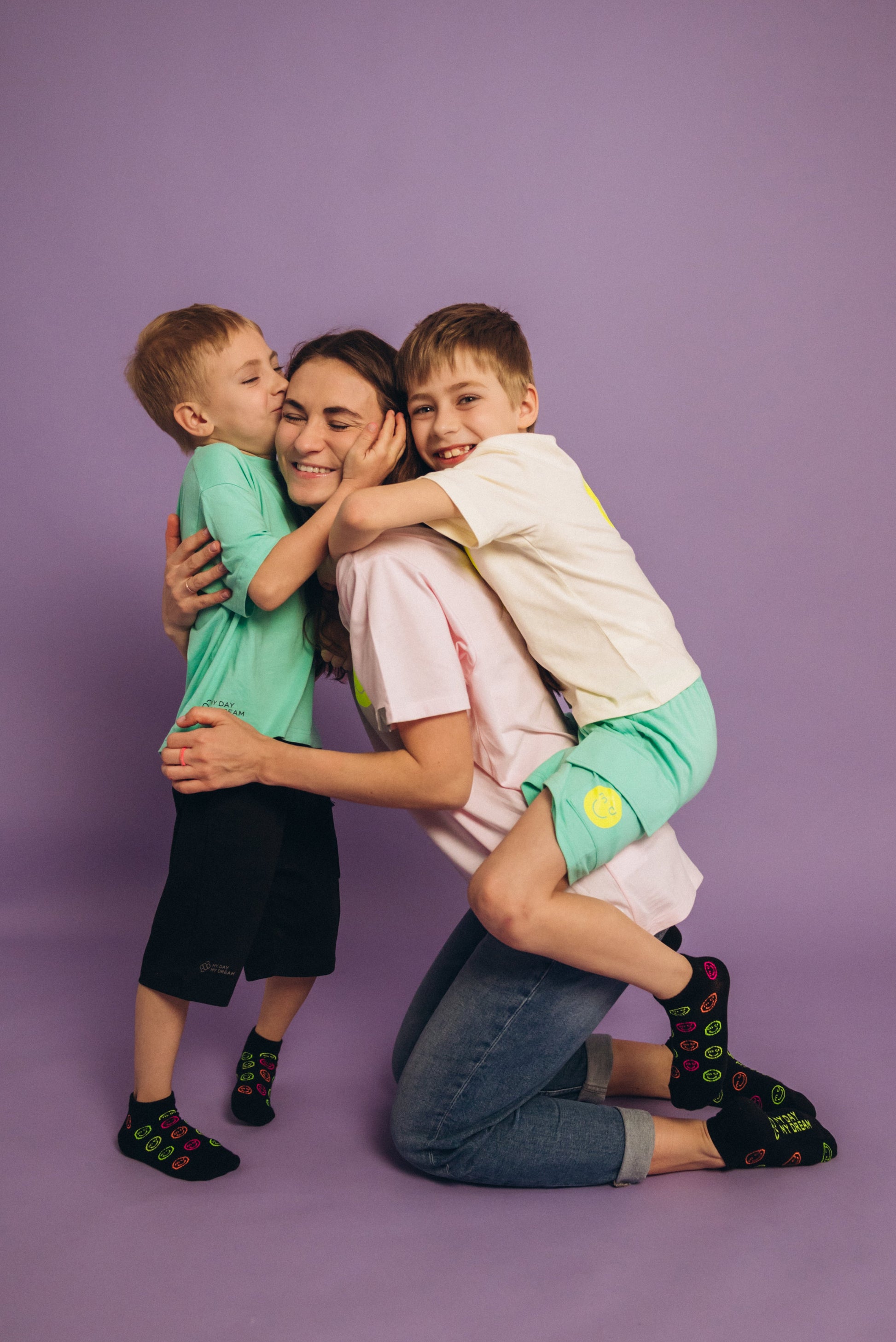 Entdecke den unschlagbaren Tragekomfort unserer trendigen Sneaker-Socken mit lebendigem Neon-Smiley-Design!