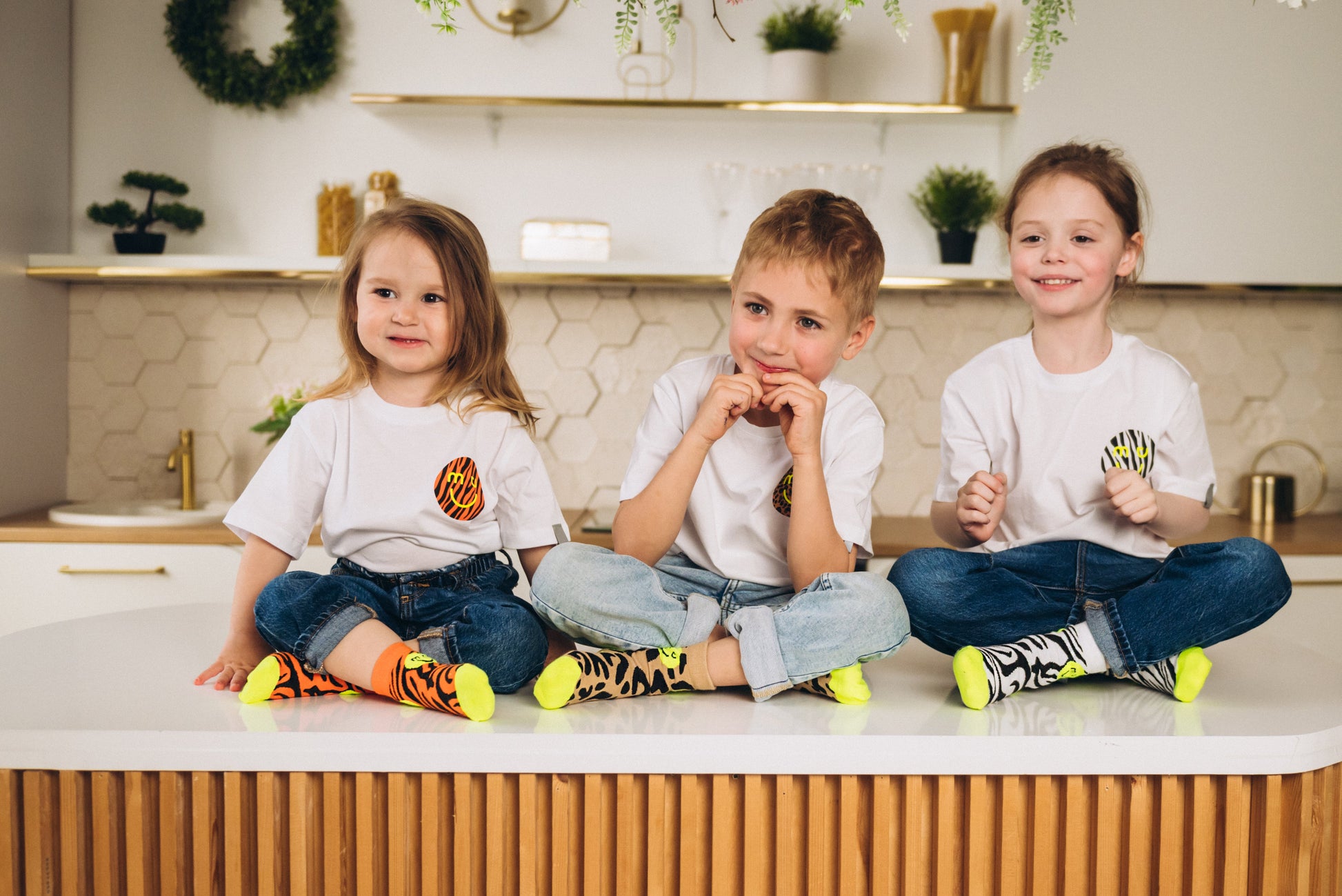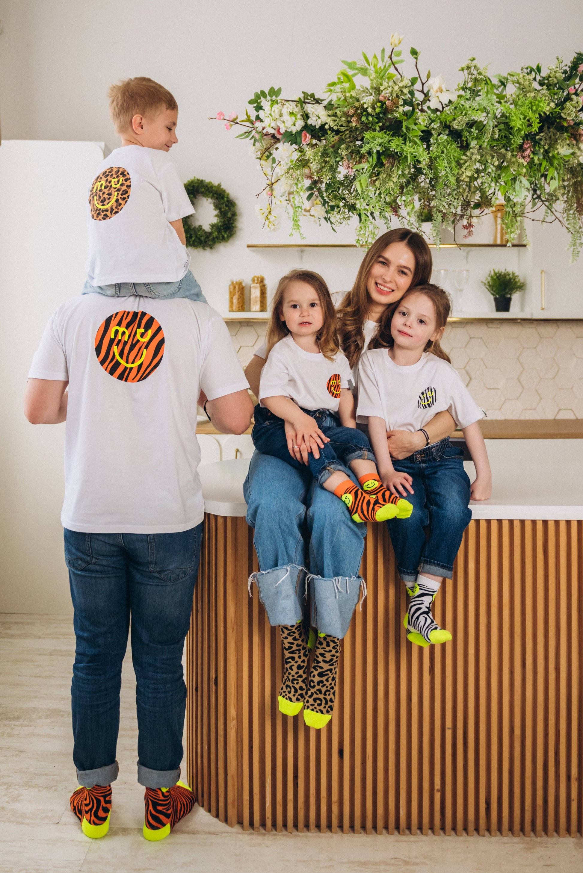 Check mal unsere coolen T-Shirts mit Animalprints-Smileys! Und das Beste: Du kannst sie mit passenden Socken kombinieren und einen lässigen Familien-Look kreieren – voll im Trend! In allen Größen verfügbar… von gross bis klein…. Jetzt deinen Style finden und gemeinsam strahlen!